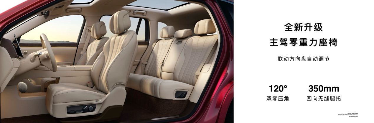 内饰采用对称式布局设计,配备16.1英寸3K悬浮中控屏搭配26英寸WHUD,更有68英寸AR-HUD[9],行车信息一目了然。副驾升级10.25英寸娱乐屏,并新增17.3英寸后排娱乐屏[10],新增组队出行与开门守卫功能[11],全家出行途中共享欢乐时光。