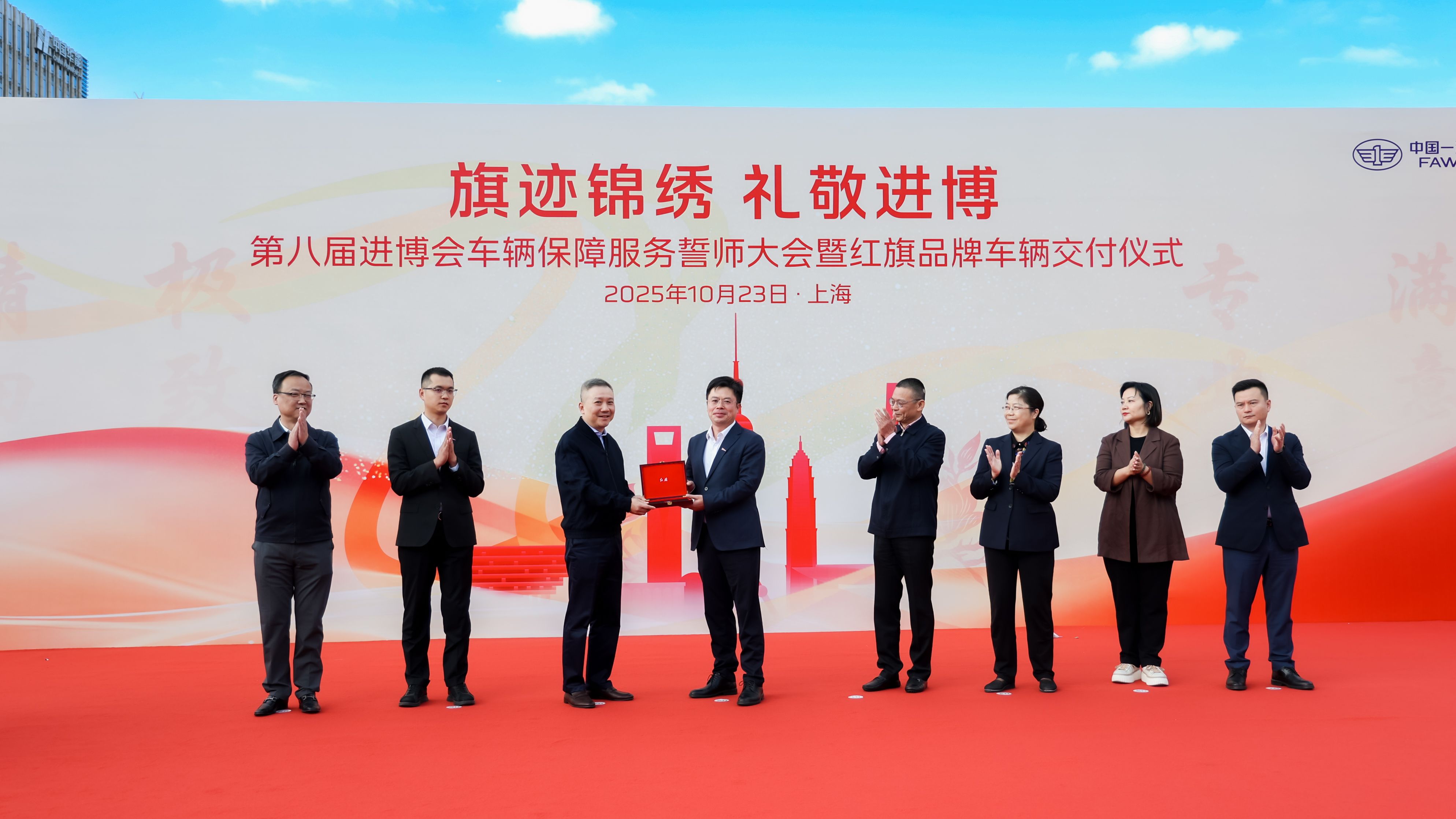 10月23日,第八届进博会车辆保障服务誓师大会暨红旗品牌车辆交付仪式在上海举行,由红旗国悦、红旗HQ9、红旗H9三款旗舰车型组成的80辆接待车队正式交付上勤集团,将在11月5日至10日举行的第八届进博会期间,以最高标准、最严要求、最优服务,为与会嘉宾提供安全、舒适、尊贵的出行体验,向世界展示中国制造的卓越品质和东方待客之道的独特魅力。此次以“红旗力量”为全球经贸盛会保驾护航,也标志着红旗品牌在世界经贸合作的舞台上,继续书写中国民族品牌的崭新篇章。
