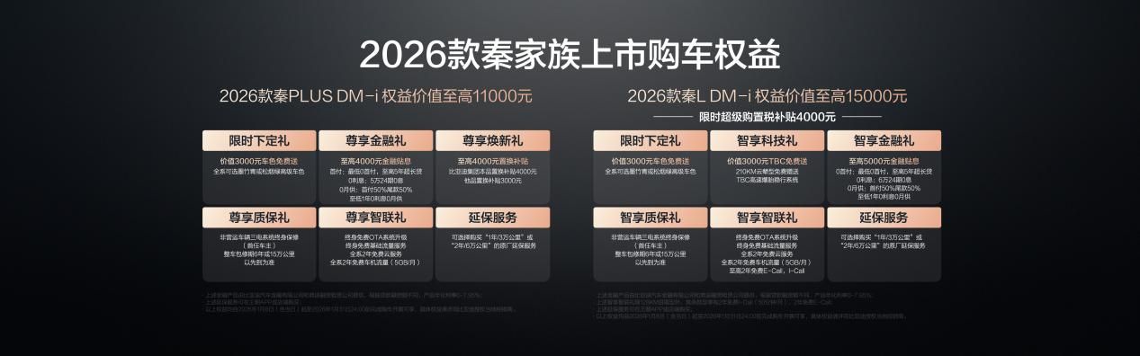 8.98-12.28万!2026款秦L DM-i /2026款秦PLUS DM-i 上新210KM长续航