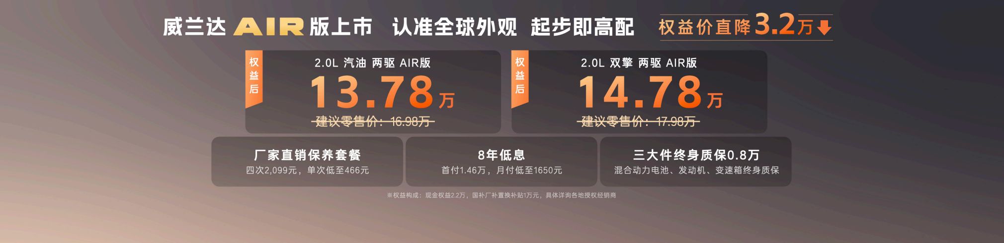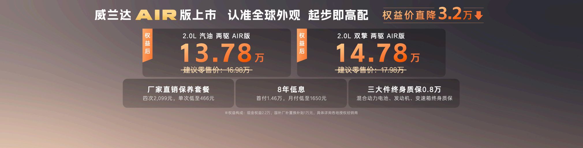 全新换代威兰达AIR版正式推出:13.78万元起,满配还享8年低息