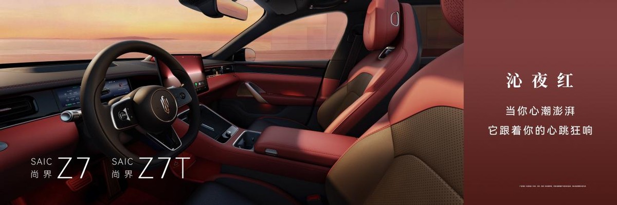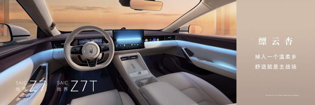 内饰方面,尚界Z7、尚界Z7T拥有更年轻的空间设计,带来沁夜红、速影黄[4]、凝夜紫、闪金黑、缥云杏5款时尚配色,拼色设计,呈现出更加轻盈、悬浮且富有层次感的视觉效果,带来通透和舒展的空间感受。新车还配备全新一体式运动座椅,进一步营造运动氛围的同时,也能带来更好的支撑性和舒适性。