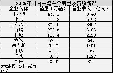(本文作者:宋欢)日前,国内主流上市车企2025年财报已接近披露完毕。过去一年,行业竞争持续升温,但头部车企业绩保持稳健增长,经营韧性凸显。