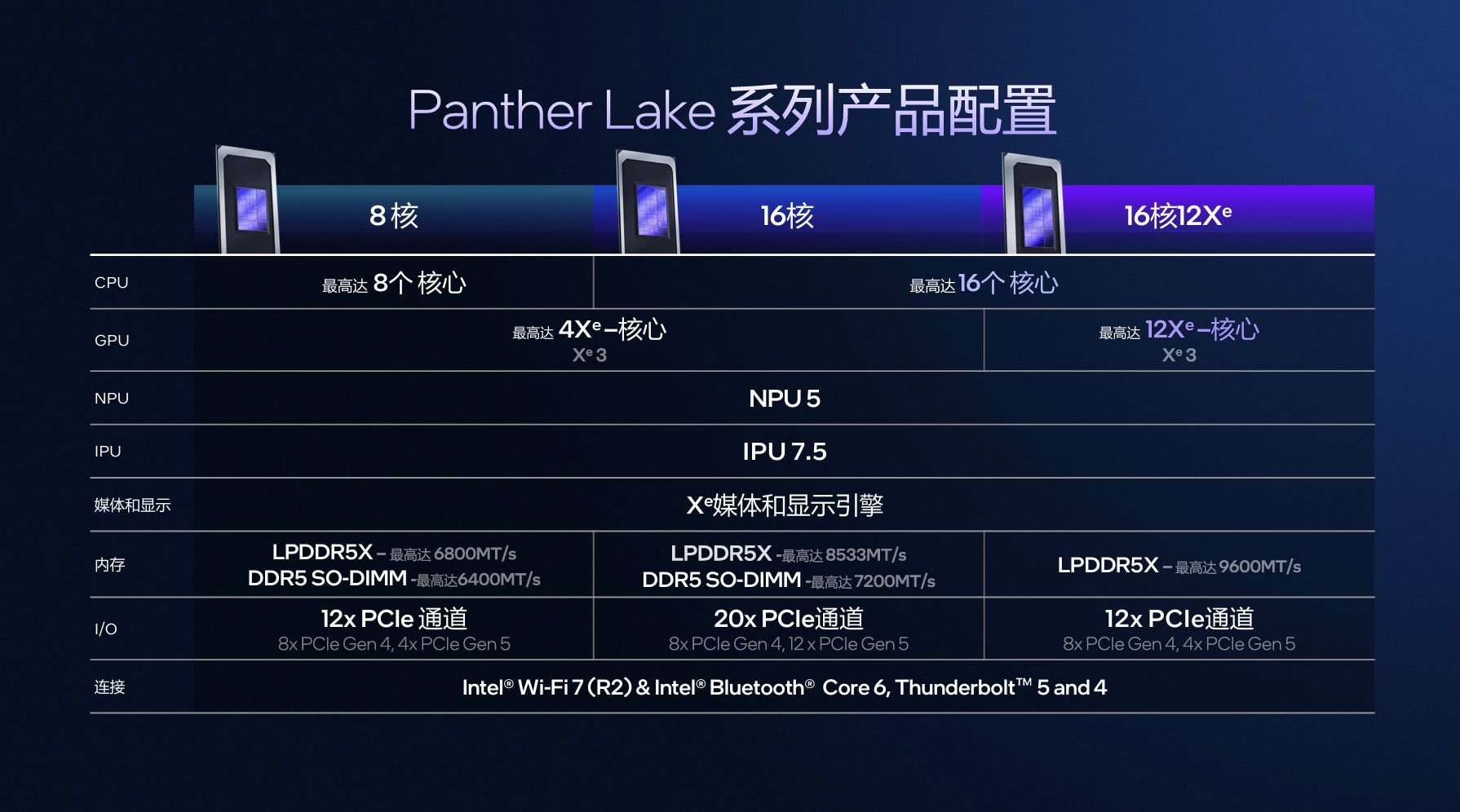 在无线连接与影像处理上,Panther Lake同样带来行业领先配置。
