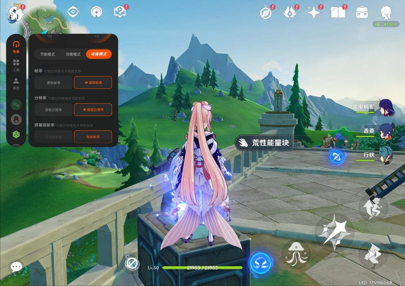 实测中我们发现,玩《原神》时,它也支持超分超帧同开。开启后,画面精美,帧率稳定,每一处风景都如同原画级大片。