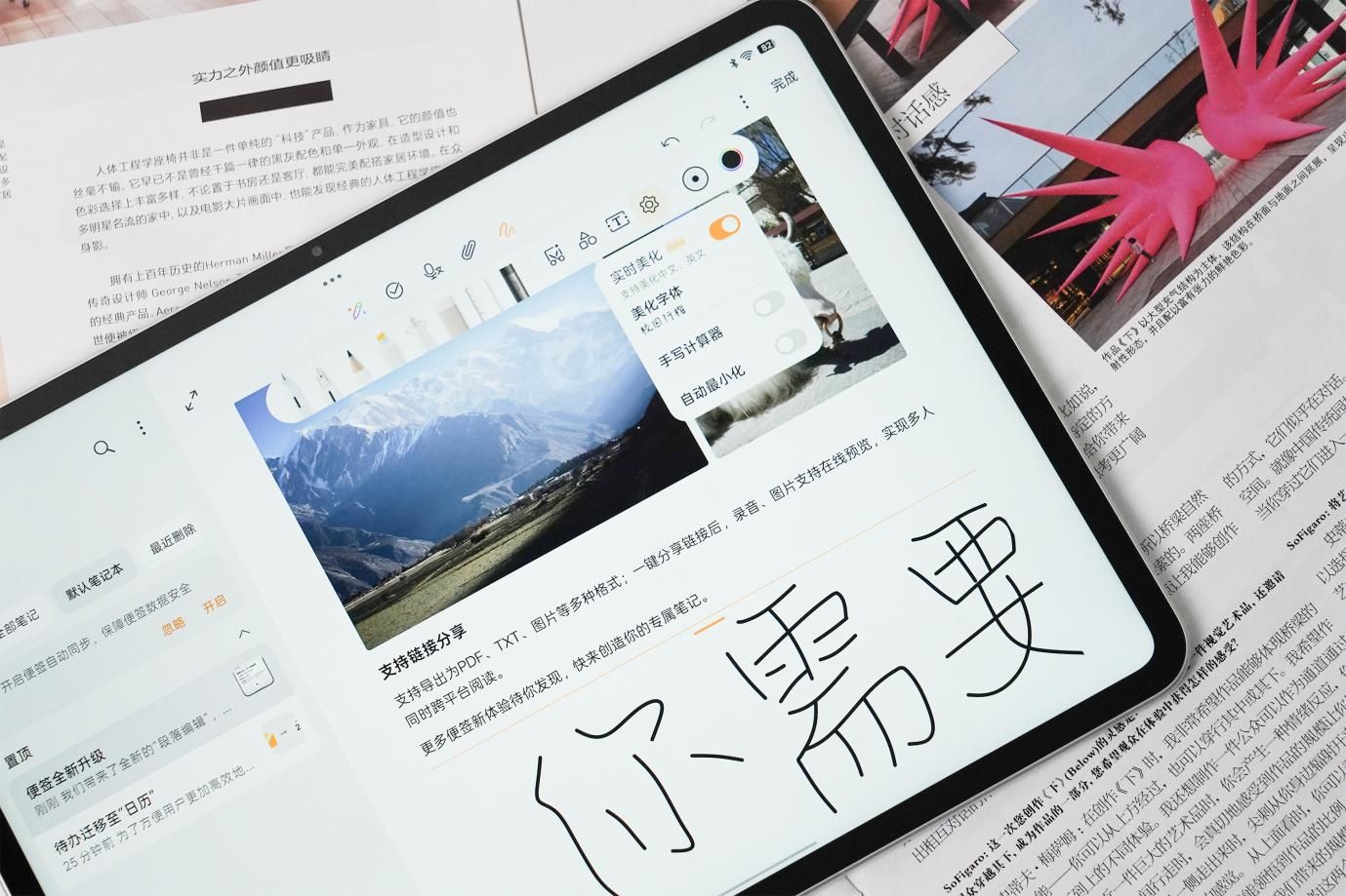 而 AI 加持的“学习秘籍”,更是让OPPO Pad 5成为学生党的“学习神器”。比如“实时字迹美化” 功能:在便签中进入手写模式,开启该功能后,即便书写潦草、行文歪斜,停顿1秒后字迹就会自动优化,变得工整清晰,再也不用因“笔记乱”找不到知识点;“超级智能提取 也很好用,用手势圈选屏幕上的图形、文字后,能直接提取内容插入便签,还支持智能抠图,整理课件素材时效率极高。
