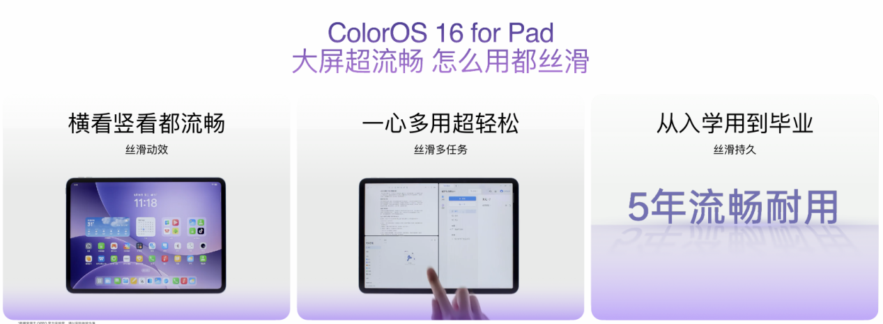 丝滑的操作体验不仅在《和平精英》,有了ColorOS 16“机圈德芙”的加持,OPPO Pad 5可谓是处处丝滑、持久流畅。作为用户体验的基础,OPPO坚持用十年讲流畅,而OPPO Pad 5更是实现了大屏也流畅。点亮屏幕,横屏与竖屏的切换无缝过渡,好用的多浮窗可以秒点秒切,更加入强大的并行动画能力,所有APP快速启切连贯丝滑,每一次使用都能带来极致流畅的操作体验,更支持超60个月久用流畅。