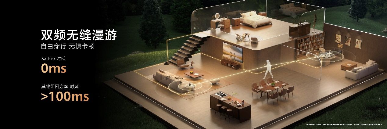 同时,华为路由 X3 Pro支持双频无缝漫游,可确保设备在屋内移动时自动切换最优节点,实现几乎无感知的连接过渡,上网体验更上一层楼。无论是从客厅走到卧室追剧,还是在家中移动进行视频会议,都能保持流畅体验。
