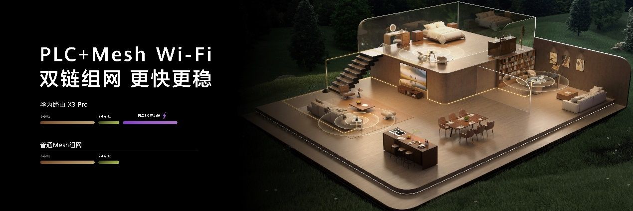 针对大户型、复式房型的网络覆盖痛点,华为路由 X3 Pro带来颠覆性的第三代PLC千兆组网。无需额外布线,仅利用家中现有电线即可传输网络信号,让家中的电线秒变高速网线。此外,华为路由 X3 Pro采用PLC+Mesh混合组网方案,核心优势全面升级。
