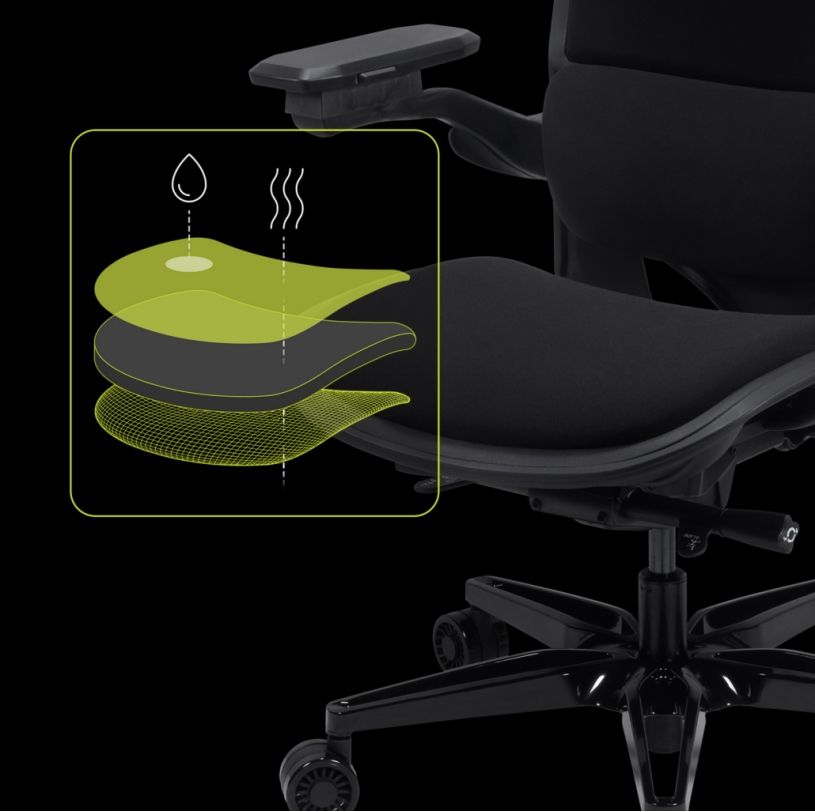 针对传统电竞椅久坐闷热痛点,MAG A10采用ERGO-COOL透气系统: