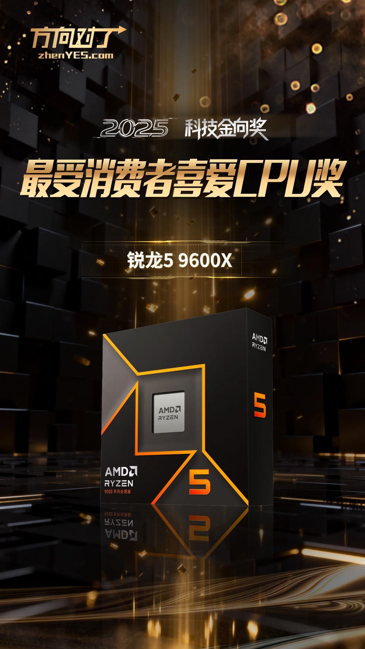 锐龙5 9600X斩获2025科技金向奖最受消费者喜爱CPU奖