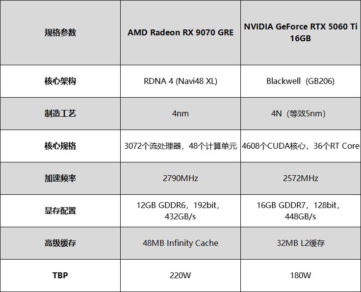 2K高帧率显卡市场,AMD Radeon RX 9070 GRE与NVIDIA GeForce RTX 5060 Ti 16GB的对位竞争堪称焦点。两款显卡同框2K游戏主力定位,价格区间重叠,却在架构设计、技术特性和实际表现上走出了截然不同的路线。