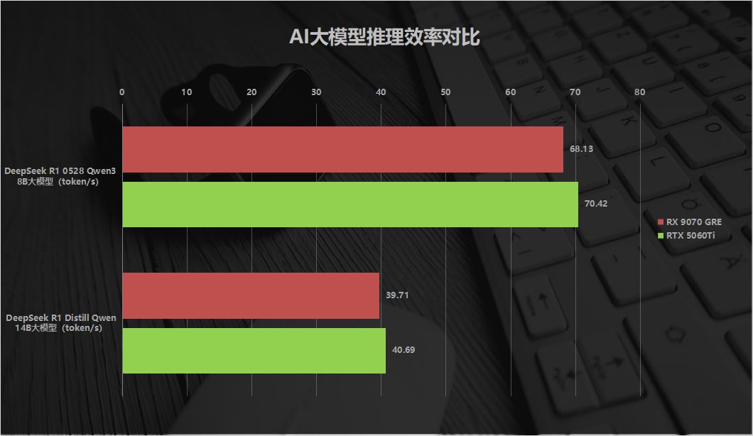 这颠覆了很多人以为的“N卡在AI领域是绝杀”的概念,其实RX 9070 GRE对标RTX 5060 Ti 16GB完全没有问题,A卡的推理效率被大大低估了。