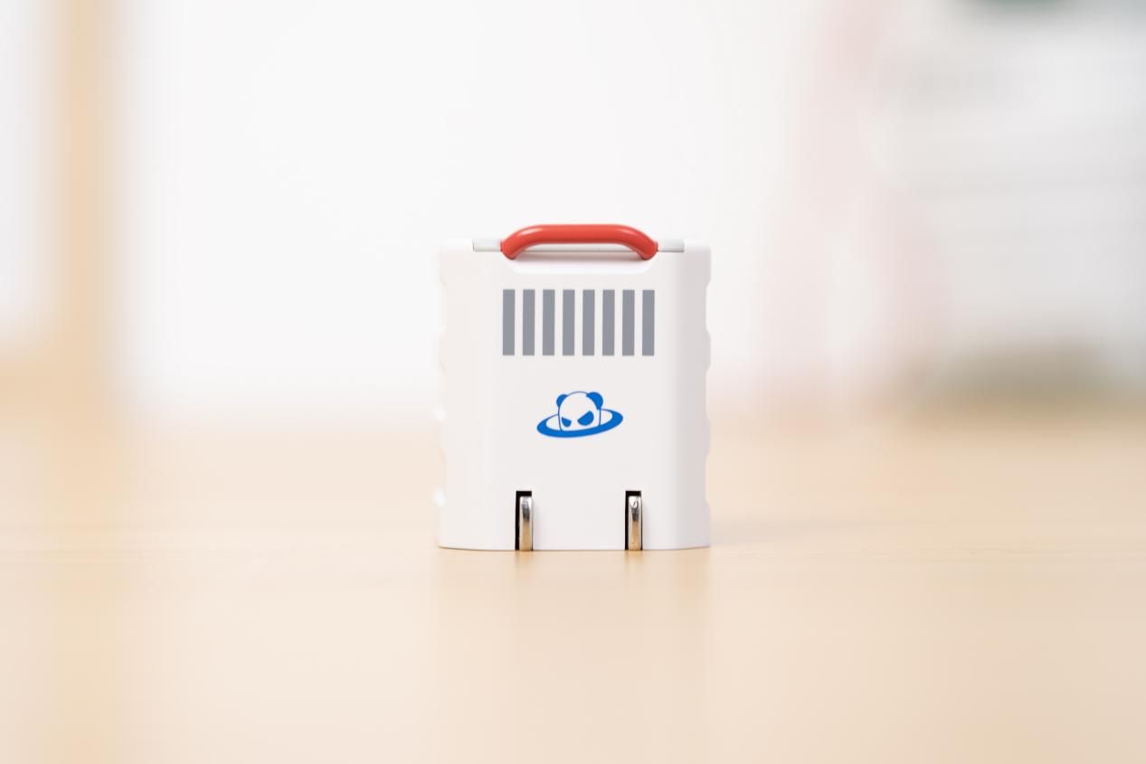 先看颜值,白色款延续了PANDAER系列的潮玩设计,灵感源自宇宙方舟号储能器的太空机甲风,简约的方正造型搭配纯白哑光质感,没有花哨的装饰,机身还嵌有定制烤漆碳钢装饰钜环,细节处尽显精致。巴掌大的机身尺寸仅32×32×36mm,重量更是轻至45g,随手塞进裤兜、背包侧袋都毫无负重感,外出携带完全不占空间,桌搭使用也简约耐看,完美融入各种桌面风格。