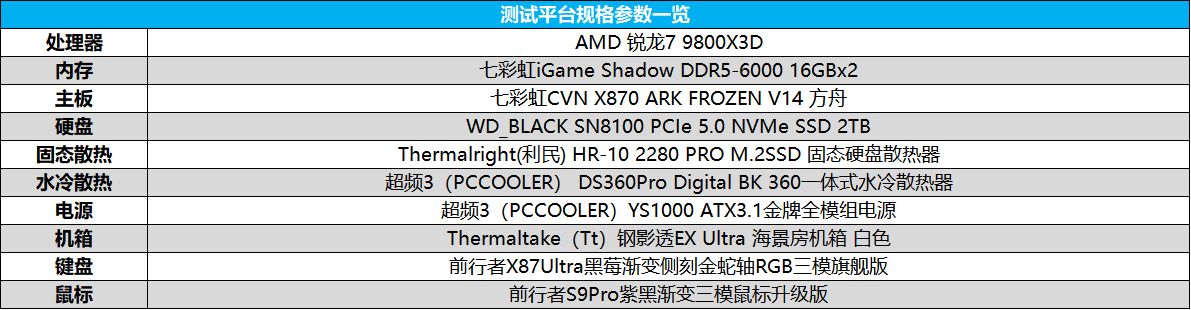 为了让蓝宝石PURE极地RX 9070 XT 16G D6 OC的性能得到充分释放,我们搭建了一套高性能无瓶颈平台,确保《生化危机9:安魂曲》的测试数据能真实反映显卡的实际表现。