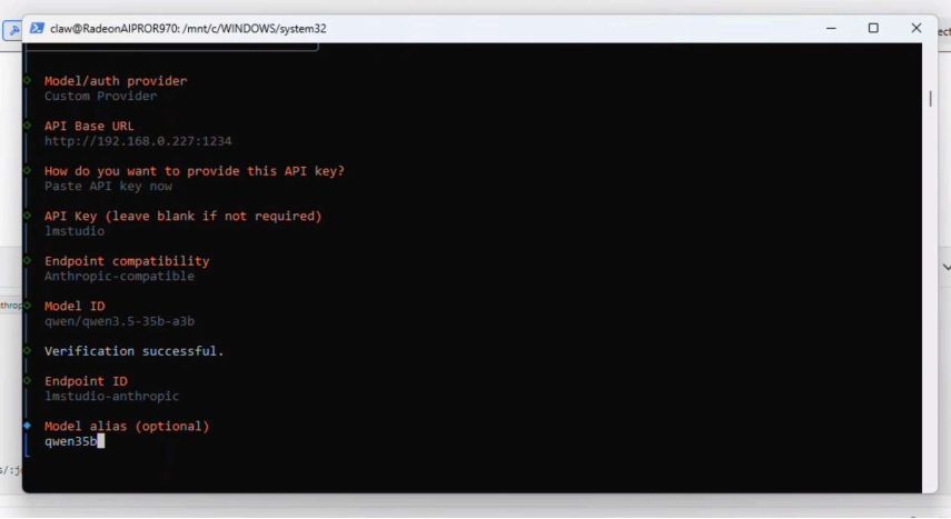 此时OpenClaw将验证连接并显示"Verification Successful(验证成功)",随后提示您输入“Endpoint ID(端点