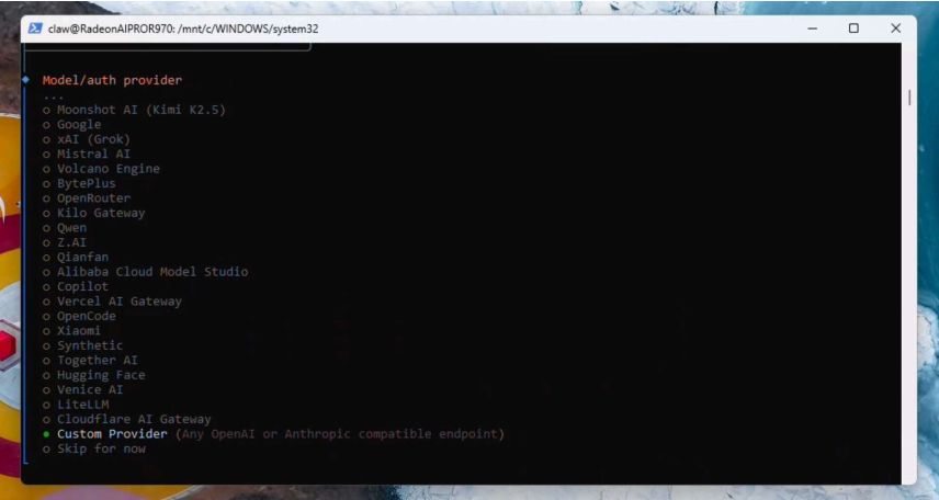 按向下箭头键滚动至“Custom Provider自定义提供商",然后按回车键确认。