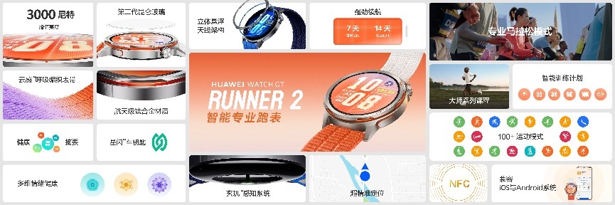 2026年3月23日,华为在春季全场景新品发布会上推出HUAWEI WATCH GT Runner 2,以“Ultra Performance”为理念,致力于为用户打造集精准定位、科学训练与舒适佩戴于一体的智能腕表,成为马拉松爱好者的理想选择。