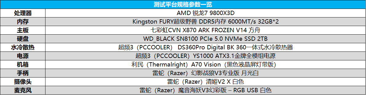 为了充分释放硬件潜力,我们搭建了无性能瓶颈的旗舰测试平台,确保显卡性能不受其他部件限制。