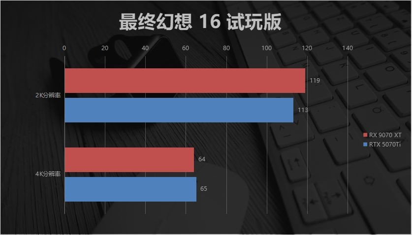 互有胜负的小幅拉锯:在《最终幻想16试玩版》《刺客信条:幻景》《黑神话:悟空》三款游戏中,二者互有胜负,帧率差距始终保持在5%以内。其中《最终幻想16》《刺客信条:幻景》中,瀚铠RX 9070 XT实现了3%-5%的小幅领先;仅在《黑神话:悟空》中,RTX 5070Ti以微弱优势实现反超,依旧没有拉开实质性差距。