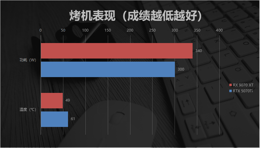 综合来看,在理论性能层面,RX 9070 XT在优势项目上拉开了明显差距,而在弱势项目上仅小幅落后,综合理论性能表现全面优于RTX 5070Ti。