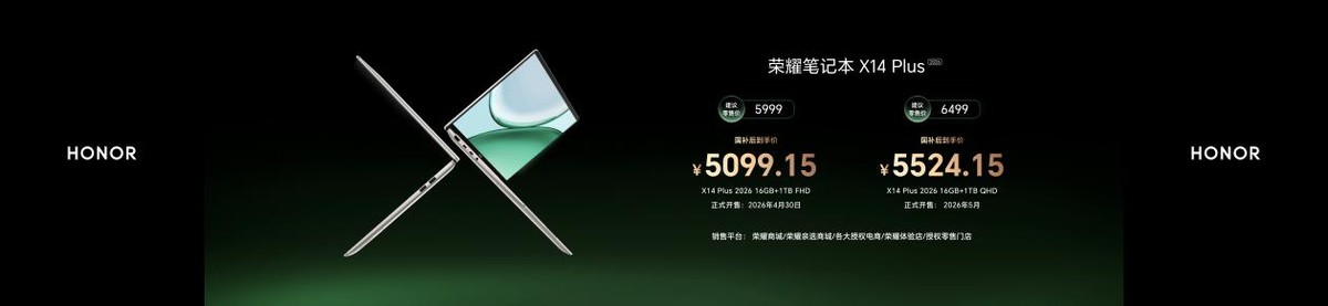 发布会上,荣耀笔记本X Plus系列2026也迎来升级迭代,新品延续荣耀X系列硬核品质基因,全系采用英特尔酷睿Ultra 5 325处理器,80Wh大电池和高刷护眼的LCD雾面屏,带来更硬核、更超能的办公体验。荣耀笔记本X Plus系列2026国补到手价5099.15元起,4月30日起陆续在全渠道发售。