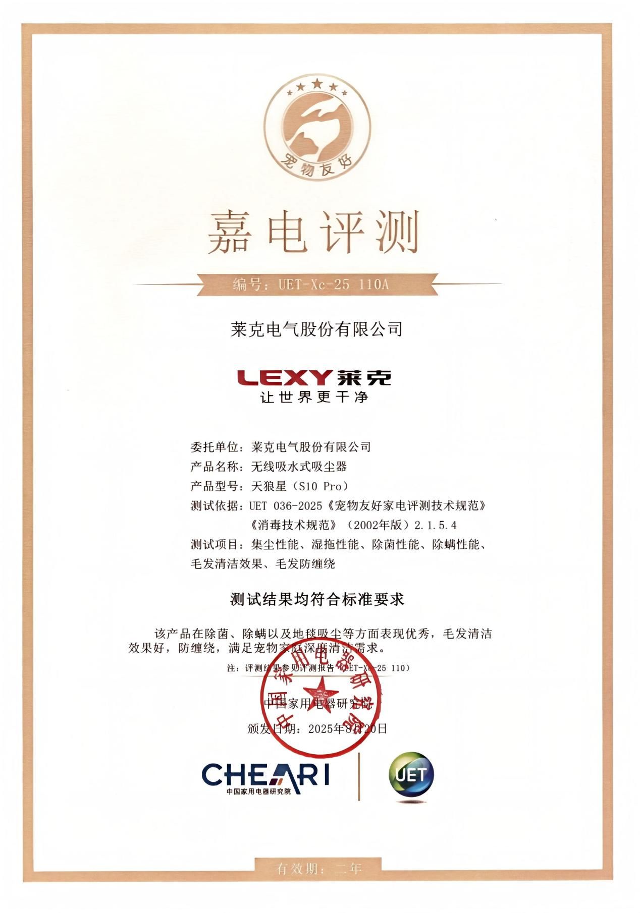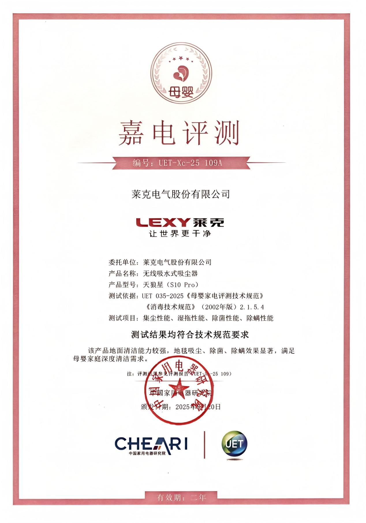 此次双项证书的获得,是莱克电气以用户需求为核心的技术研发理念的生动体现。作为专注家居品质生活的健康家电品牌,莱克通过场景化创新,让天狼星S10 Pro真正成为母婴、养宠家庭的“清洁帮手”。未来,这款集权威认可与实用性能于一身的产品,将持续为更多家庭提供高效、健康、安心的全屋清洁解决方案。