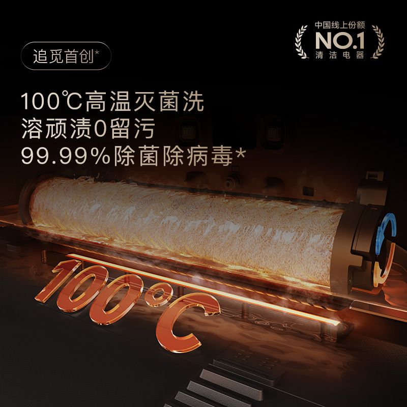 追觅创新推出的100℃高温灭菌洗拖布技术,不仅只是将热水温度升高几十度,更是精准狙击了这两大痛点,对用户最关注的清洁和自清洁问题,给出了完美解法。