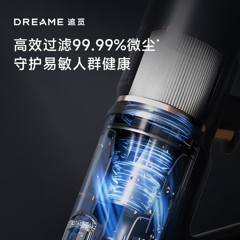 机身端5重过滤系统:在吸尘过程中,整机通过5重过滤结构,实现对小至0.3微米的微尘、花粉、尘螨等过敏原的有效拦截,拦截效率高达99.99%。
