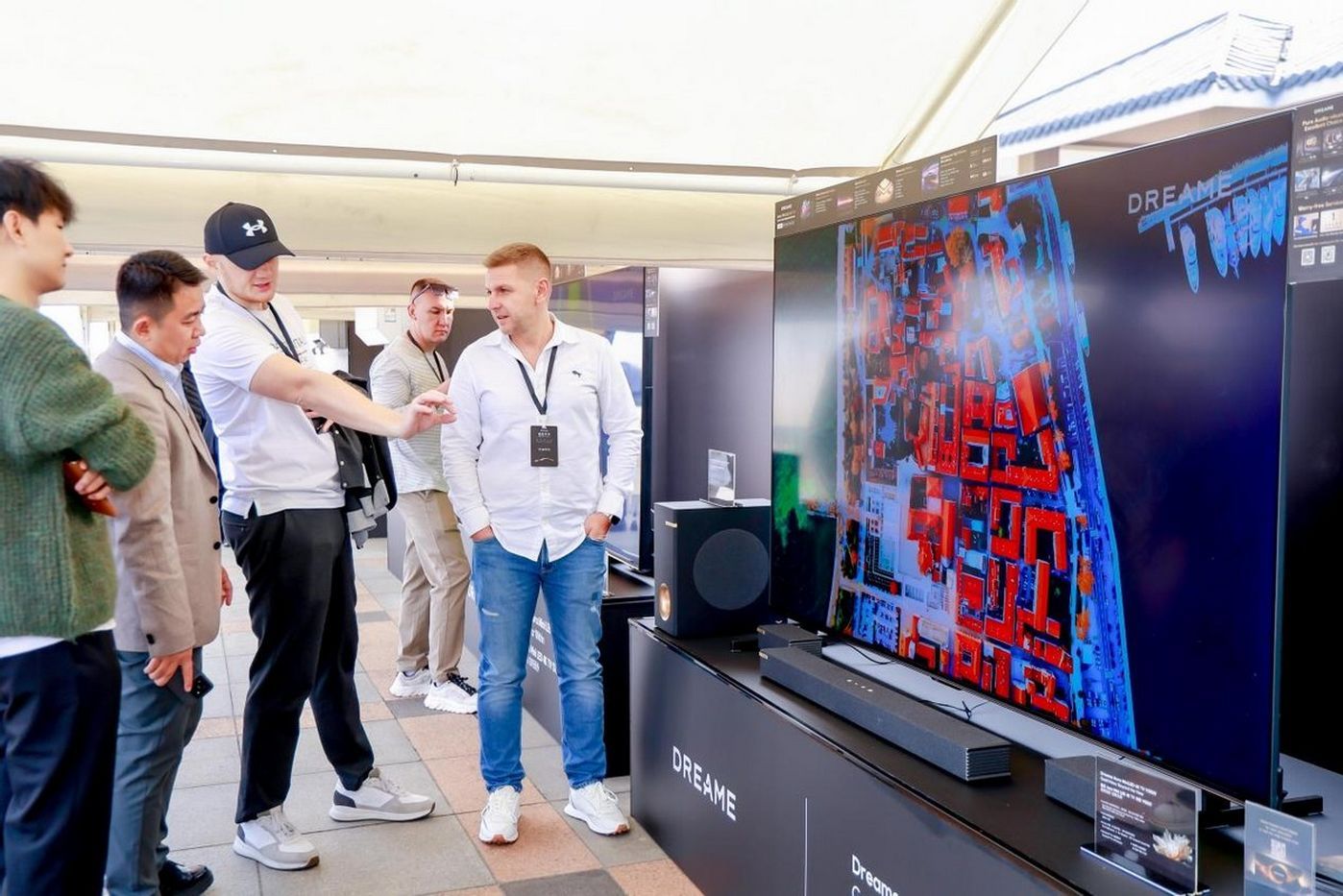 S100系列则是以“内置完整Soundbar”的全新独家0概念持续吸引全球目光,其内建的4.1.2声道音响系统结合杜比全景声技术,可以真真切切的把客厅变身为多声道环绕影院,在9月的德国IFA展上首次亮相就吸引了国际足球巨星等观众现场体验。本次海外客户在大会现场即表达订购意向,凸显其产品的独创性吸引力。