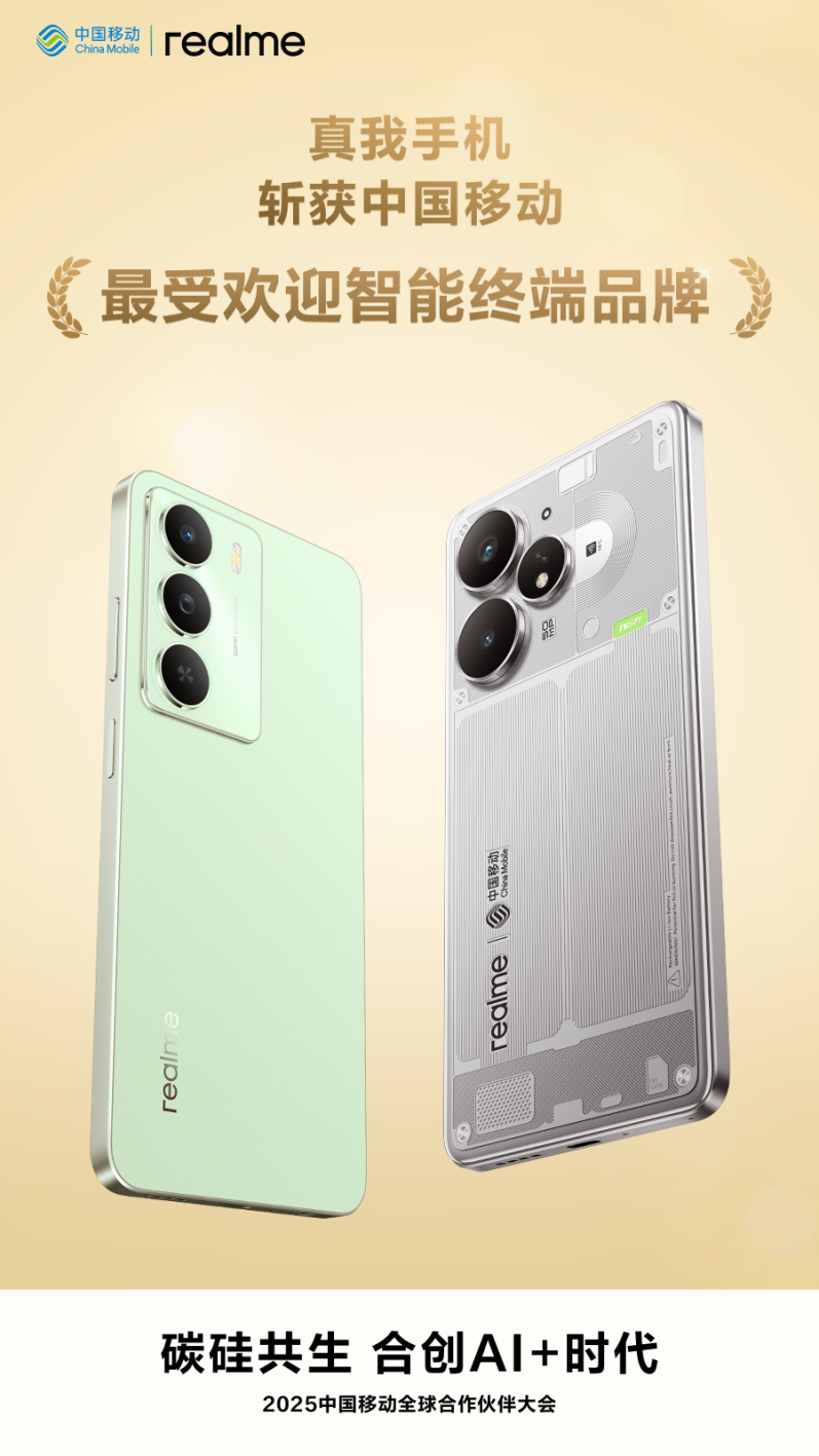 合创AI+时代,真我手机荣获2025中国移动最受欢迎智能终端品牌
