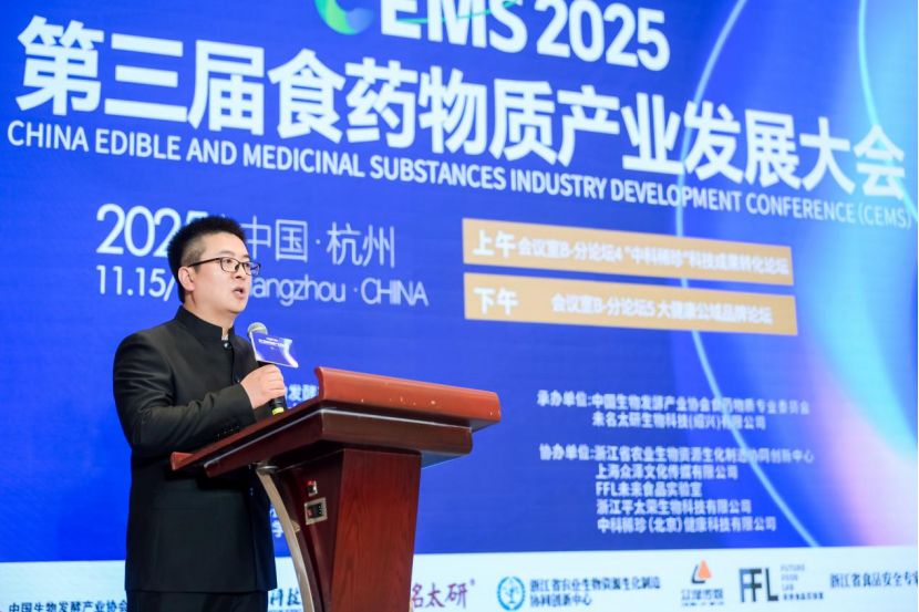 2025年11月16日,第三届中国食药物质产业发展大会在杭州隆重召开。作为本次大会的协办单位,中科稀珍(北京)健康科技有限公司董事长任金威携首席科学家闫硕博士、首席研发总监史小伟博士等核心团队成员,深度参与大会核心议程,不仅牵头举办科技成果转化分论坛,更凭借多款明星产品斩获大会 “最受欢迎产品奖”,全方位展现了企业在食药物质科技转化与产品创新领域的硬核实力。