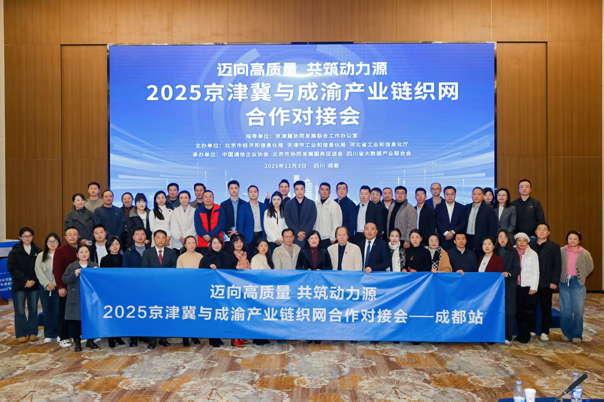 12月3日,2025京津冀与成渝产业链织网合作对接会在成都成功举行。本次对接会在京津冀联合办的大力支持下,由北京市经信局牵头,联合天津、河北工信部门共同主办,中国通信企业协会、北京市协同发展服务促进会和四川省大数据产业联合会承办。继2024京津冀与成渝产业链织网合作对接会后,京津冀三地再次来到成都,旨在进一步加强京津冀与成渝地区中国经济重要增长极的产业联动,切实推进京津冀“六链五群”“卡点”攻关、“堵点”招商,助力京津冀产业链“强链”“补链”“延链”。来自京津冀和成渝地区企业、商协会等近120人进行现场交流。