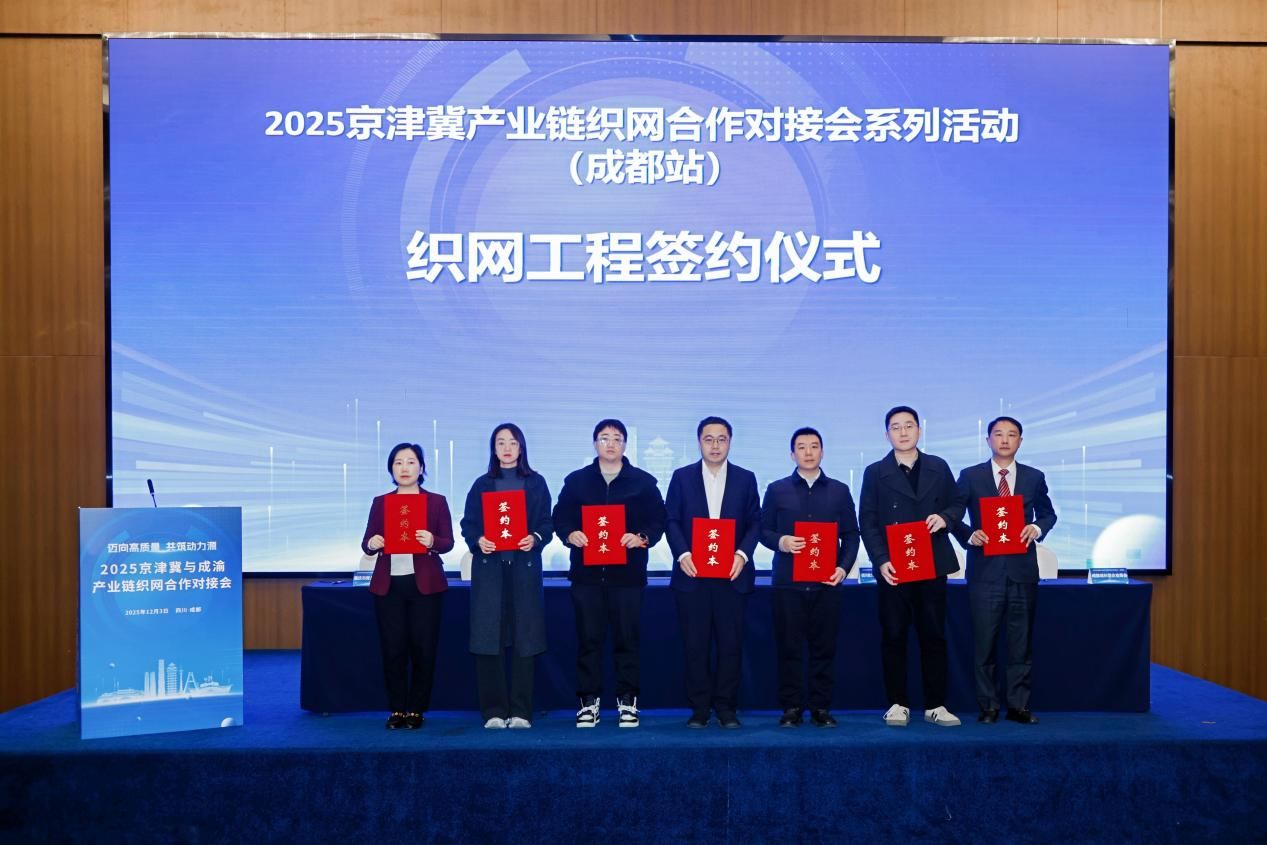 去年,京津冀与成都市产业数字化促进会等5家成渝地区单位建立“织网”合作机制。一年来,这张跨区域产业网络为两大动力源区域产业合作持续助力。对接会现场,北京市协同发展服务促进会与四川省大数据产业联合会、成都市科技金融协会、成都外商投资企业协会、成都市数字经济商会、成都市成长型企业商会、重庆市算力产业协会进行战略合作签约,为京津冀与成渝的深化合作注入新的动力。