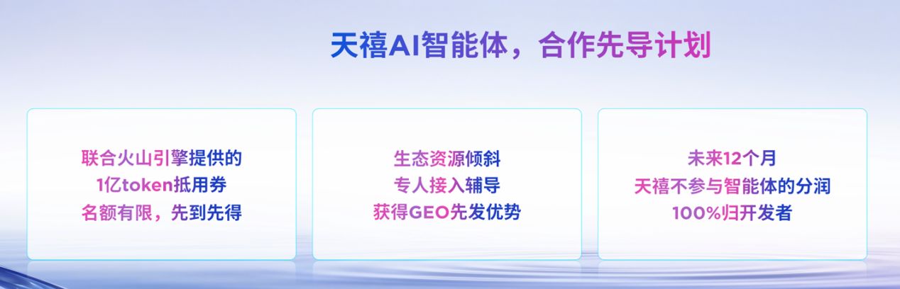 基于坚实的生态与商业基础,联想在本次大会上联合火山引擎启动了“天禧AI生态智能体先导计划”。该计划为早期加入的开发者提供了极具吸引力的多重扶持,其中包括提供1亿token抵用券,助力开发者通过扣子编程的形式进行智能体开发;帮助开发者获得GEO先发优势;在未来12个月,智能体产生的全部利润将100%归于开发者。联想同时宣布,已与扣子、百度文心、猎户座等主流智能体平台达成合作,并持续期待更多智能体平台加入,为联想用户带来丰富的智能体服务,也为开发者带来流量加持。