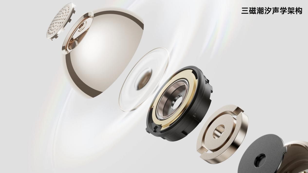 开放式耳机的音质困境,尤其是低频流失问题,一直被行业视为“物理限制”。MOVA TPEAK Clip Pro的解决方案是系统性的声学重构。MOVA自研的“三磁潮汐声学架构”将磁路性能提升至传统单磁喇叭难以企及的水平,且远超目前市面上大多数的双磁结构,三磁体堆叠带来更强的驱动力与控制力,让开放式结构下的低频有了扎实的基础。