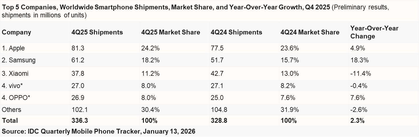 IDC 2025: OPPO第四季度国内双位数增长,安卓唯一