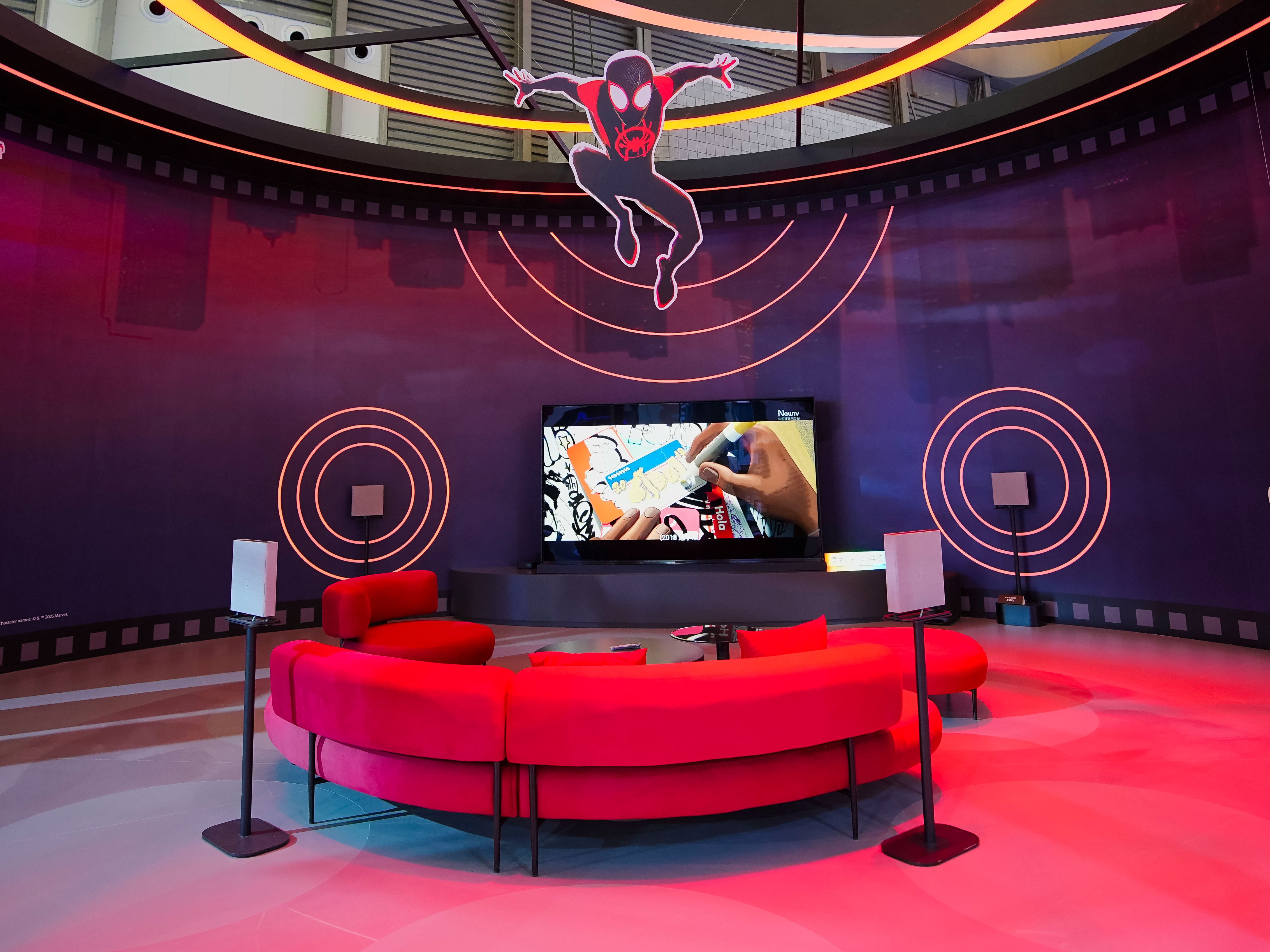 在电影圣殿展区,索尼以《蜘蛛侠:纵横宇宙》经典IP为载体,通过巨幕真彩RGB电视与旗舰家庭影院HT-A9M2的音画协同,精准还原画面细节与动态张力,搭配AI智慧功能实现画质、音质、交互的全链路优化,让专业影院体验走进家庭。