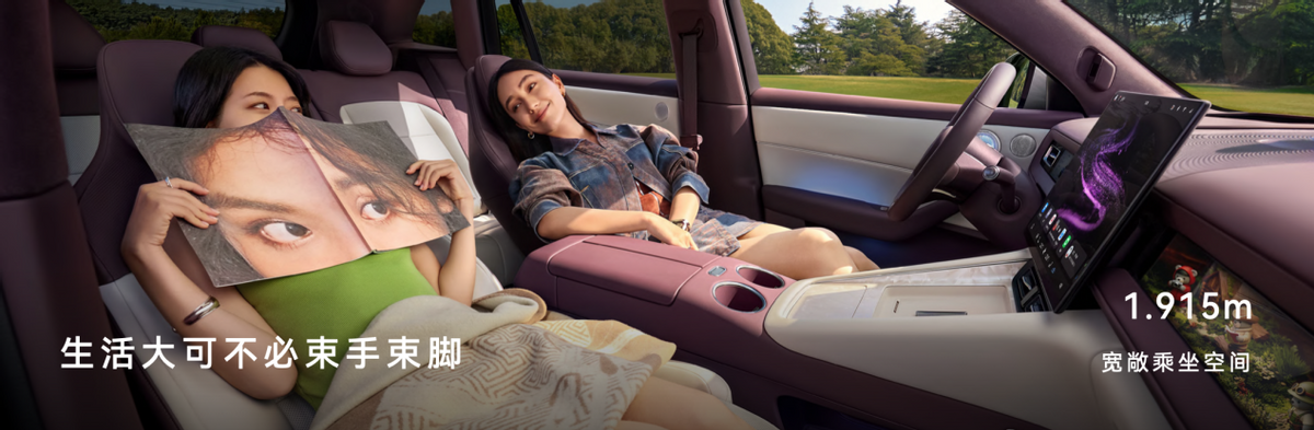 问界M6拥有1.915m的宽敞乘坐空间,为驾乘者带来开阔自由的舒适体验。纯电版至高202L超大容量智能前备箱[16]支持智能电动开合、智能防夹。前排全新