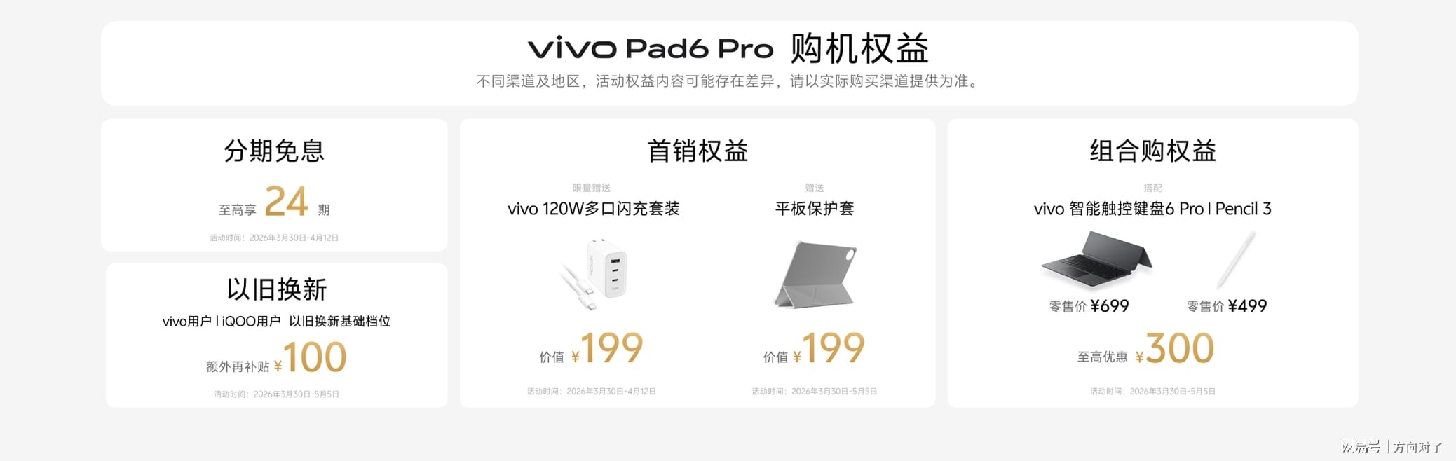 目前,vivo Pad6 Pro已在vivo官网及各大电商平台开启预售,并于4月3日正式开售。上市价格4499元起,首销期间可享多重优惠。