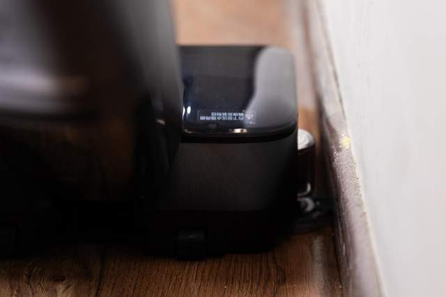 靠近桌腿这类边角时,高精度TOF传感器毫秒级识别,探洗臂会自动外扩5mm紧紧贴住边缘,高速旋转的拖洗盘配合电机下压,连桌腿根部的积灰都能刮得干干净净,用手摸过去没有一点粉末残留,也不会留下水线。