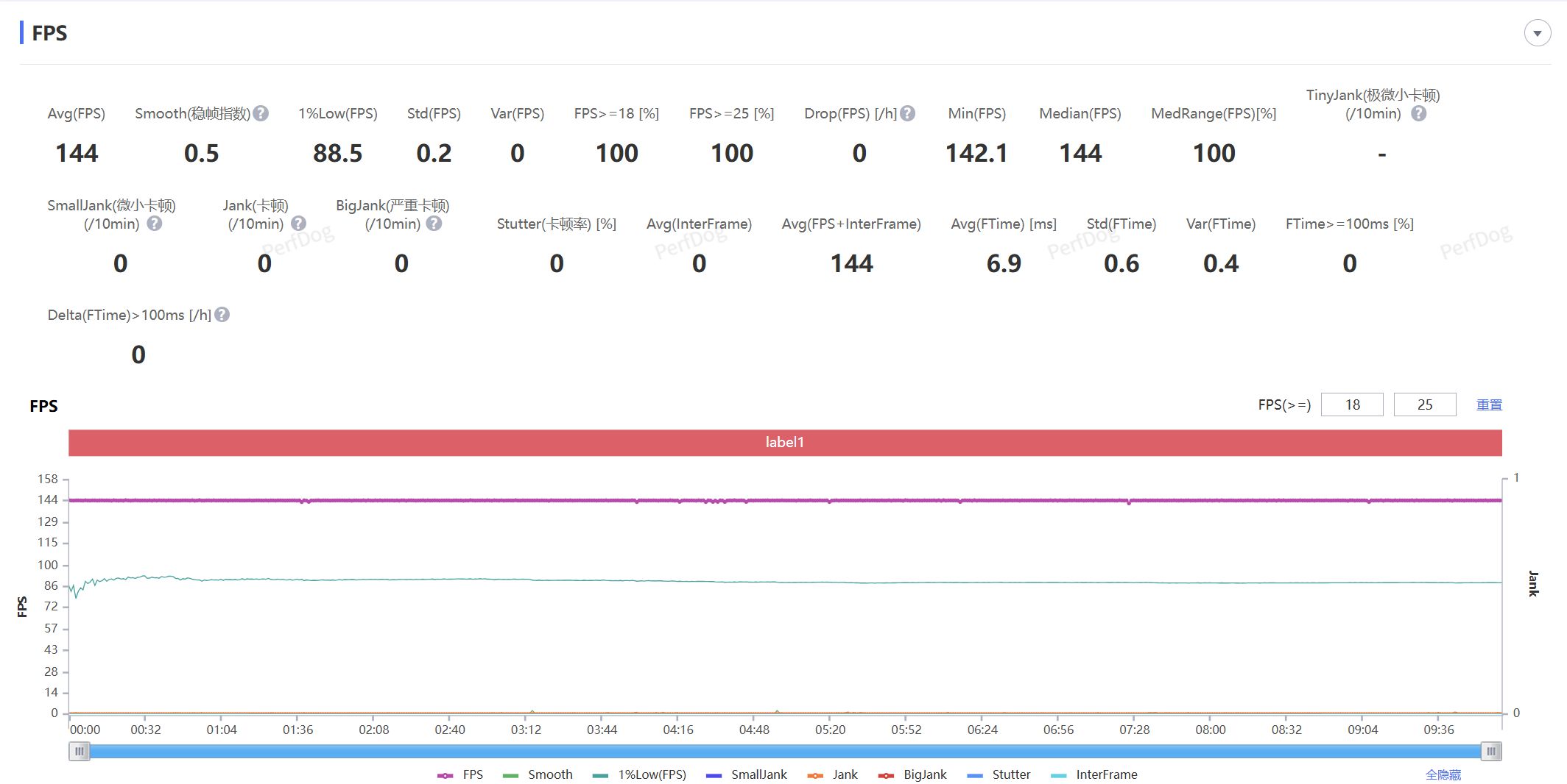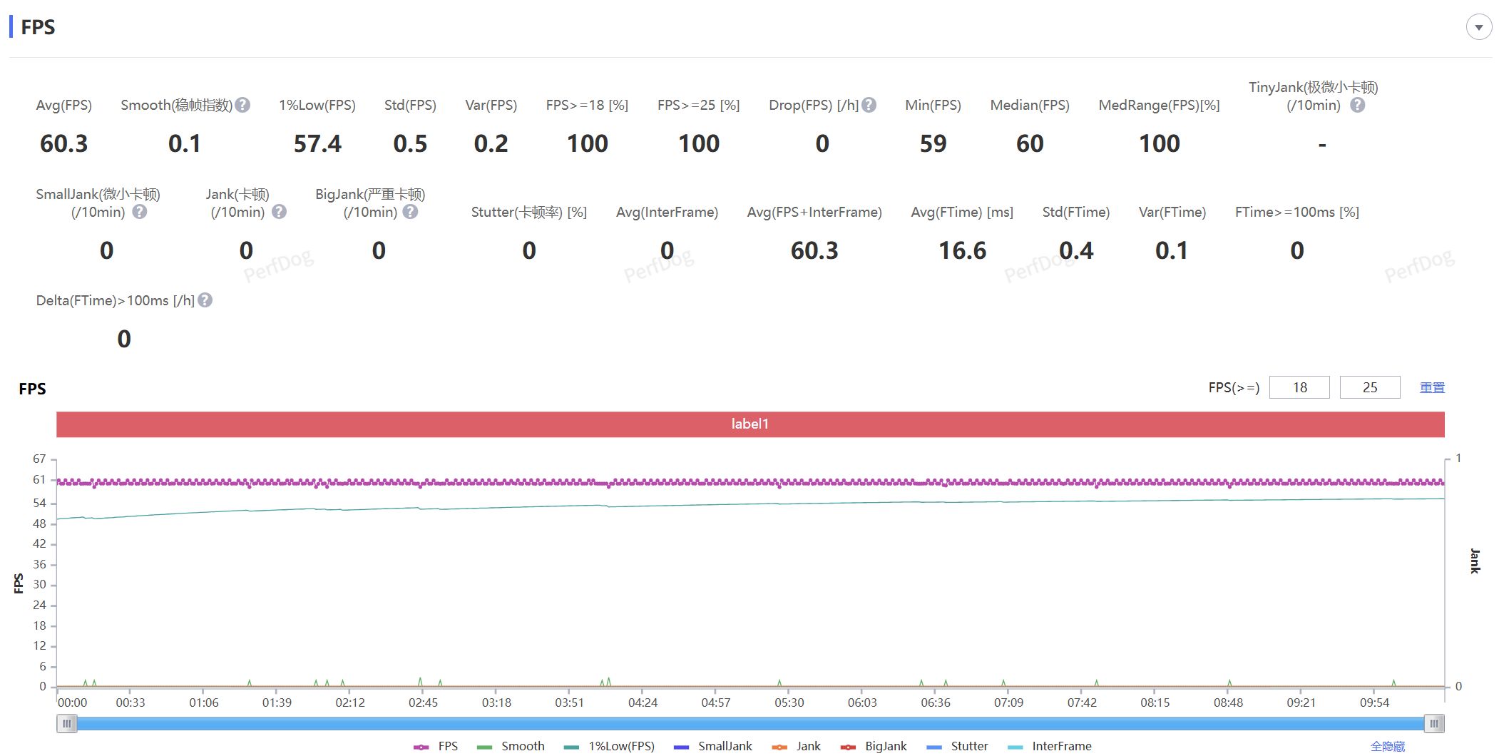 再来关注一下这款手机的实测中的帧率表现。游戏实测我们使用的PerfDog性能狗,PerfDog性能狗是一款专业强大的移动应用性能测试工具。它能精准监测帧率、CPU、内存等多项数据 ,以直观图表呈现。操作便捷,适配多平台,无论是游戏开发者优化性能,还是玩家评估体验,都非常好用。