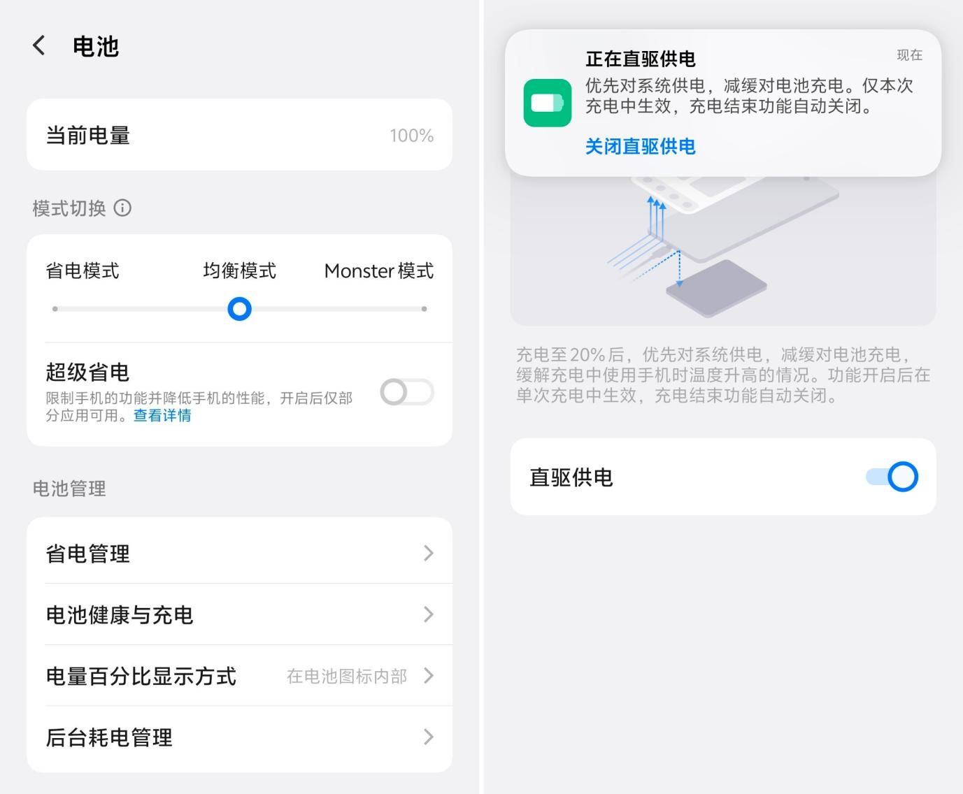 更惊喜的是“续航与快充”的平衡:100W超快闪充,能做到“充电3分钟,抖音2小时”。全局直驱供电 2.0更是能让我们放心的边玩边充,不会出现“越充越烫”的情况。因为直驱供电技术会优先用充电器给系统供电,减少电池损耗,对习惯“边充边玩”的玩家来说,这份“安心”比快充速度更重要。