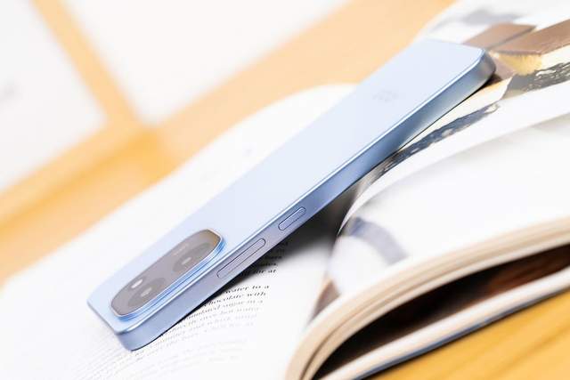 大R 角设计握在手里不硌手,视觉四等边的下黑边比上一代收窄了 28.5%,正面看屏占比很舒服。